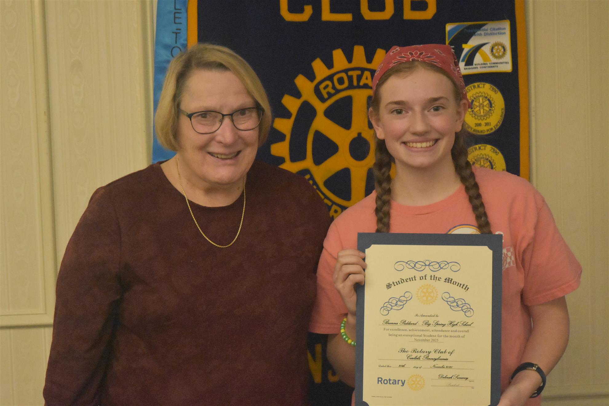 The Rotary Club of Carlisle honored Brenna Peddicord as the November Student of the Month from Big Spring High School. Pictured with President Deborah Sweaney.