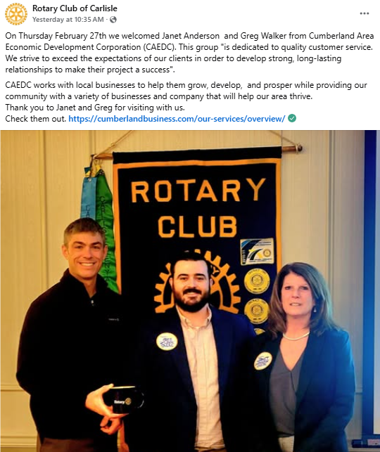 Great presentation by the Cumberland Area Economic Development Corporation (CAEDC).